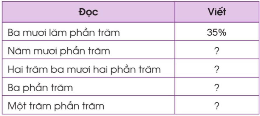Viết tỉ số phần trăm tương ứng (theo mẫu):
