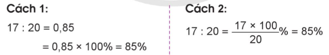 a) Nhận xét hai cách tính tỉ số phần trăm của hai số 17 và 20 dưới đây: