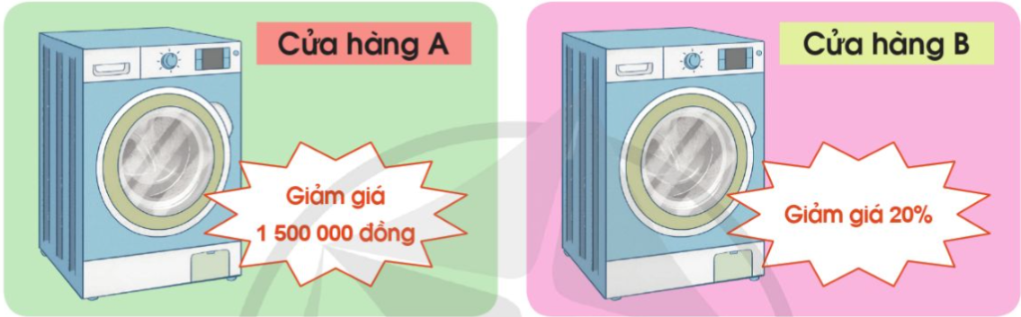 Một chiếc máy giặt có giá niêm yết 7 990 000 đồng được bán ở hai cửa hàng khác nhau với hai chương trình khuyến mãi khác nhau:
