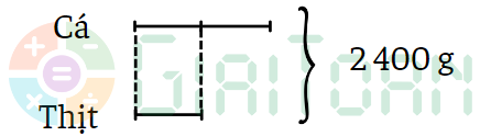 Mẹ mua 2 kg 400 g cả thịt và cá. Khối lượng cá gấp 2 lần khối lượng thịt. Vậy mẹ đã mua: