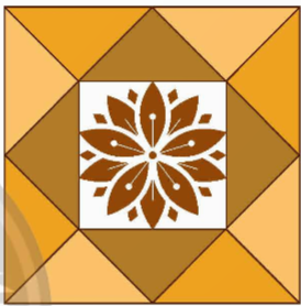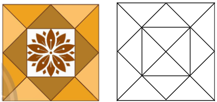 Có một viên gạch hình vuông, giữa viên gạch có một hình vuông màu trắng được vẽ họa tiết (như hình bên).