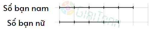 Viết tỉ số của số bạn nam và số bạn nữ dưới dạng phân số tối giản rồi vẽ sơ đồ đoạn thẳng thể hiện tỉ số đó.