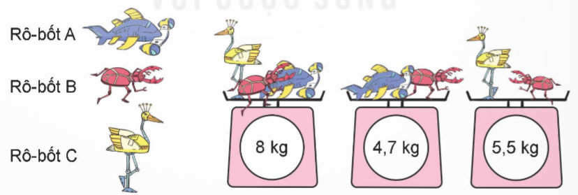 a) Rô-bốt A cân nặng 8 - 5,5 = 2,5 kg.