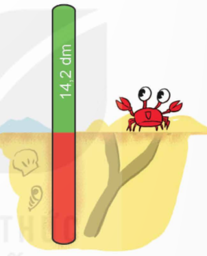 Một chiếc cọc được sơn hai màu xanh và đỏ (như hình vẽ). Biết đoạn màu xanh dài hơn đoạn màu đỏ là 1,8 dm. Tính độ dài chiếc cọc đó.