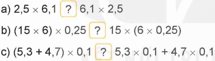 a) 2,5 x 6,1 = 6,1 x 2,5
