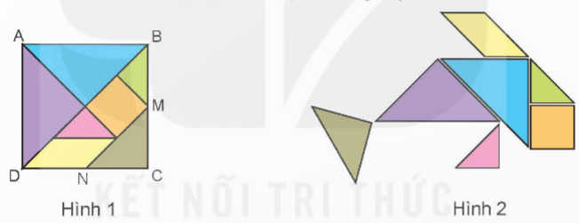 Mai tô màu một tờ giấy hình vuông cạnh 12 cm như hình 1 rồi cắt theo các vạch chia. Từ các mảnh giấy thu được, Mai ghép thành con cá như hình 2.