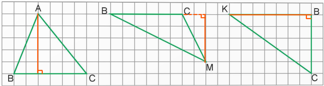 Vẽ các hình tam giác sau vào vở, sau đó vẽ đường cao ứng với đáy BC của mỗi hình tam giác đó.