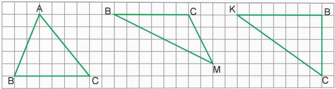 Hãy chỉ ra đáy và đường cao tương ứng được vẽ trong mỗi hình tam giác dưới đây.