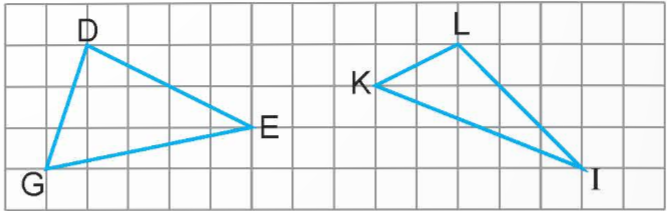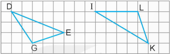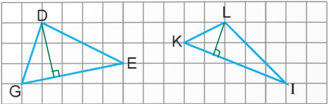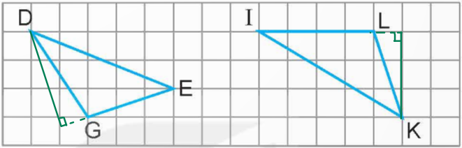 a) Vẽ hình tam giác DEG, IKL trên giấy kẻ ô vuông như hình bên rồi vẽ đường cao ứng với đáy GE, KI của các hình tam giác đó.
