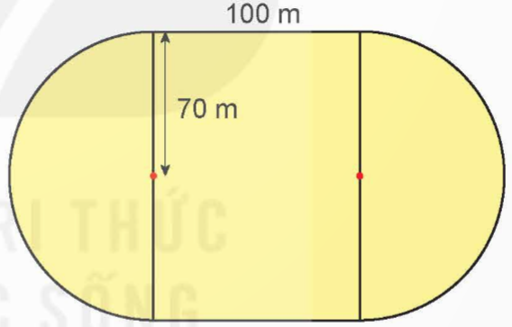 Một sân vận động được xây dựng trên mảnh đất tạo bởi một hình chữ nhật và hai nửa hình tròn có kích thước như hình bên. Diện tích mảnh đất đó là ? m2.