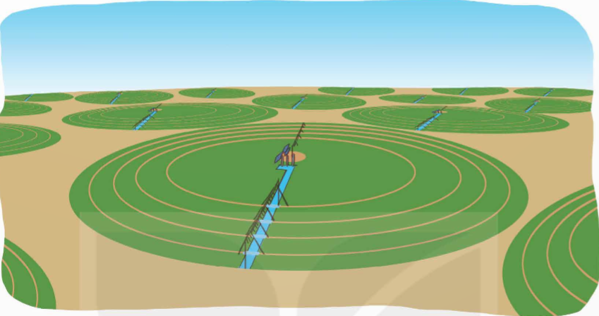 Ở một vùng sa mạc, người ta trồng lúa trên những thửa ruộng có dạng hình tròn bán kính 50 m. Biết rằng có 1 000 thửa ruộng như vậy. Hỏi tất cả diện tích trồng lúa là bao nhiêu mét vuông?
