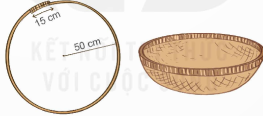 Biết chiều dài phần hai đầu tre buộc vào nhau của cái cạp rổ là 15 cm (như hình dưới đây). Chiều dài của thanh tre uốn thành cái cạp rổ là ? cm.