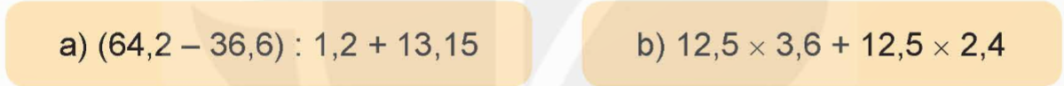 a) (64,2 - 36,6) : 1,2 + 13,15