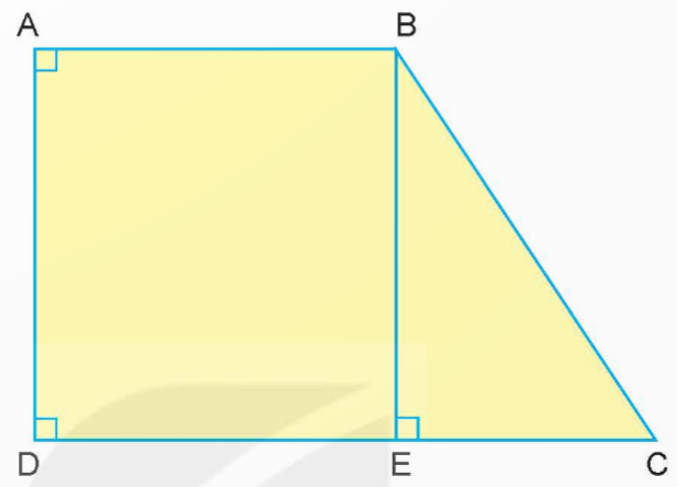 Cho hình thang vuông ABCD có đáy lớn hơn đáy bé 40 cm, có chiều cao bằng trung bình cộng của hai đáy và bằng 80 cm. Đoạn thẳng BE vuông góc với CD chia hình thang thành hình chữ nhật ABED và hình tam giác BCE. Tính: