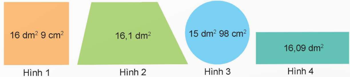 Vậy 15,98 dm2 < 16,09 dm2 < 16,1 dm2.