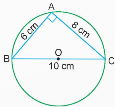 Cho hình tam giác vuông ABC và hình tròn tâm O với kích thước như hình vẽ bên.