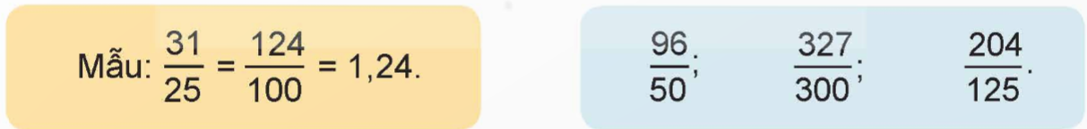 c) Chuyển các phân số sau thành số thập phân (theo mẫu).