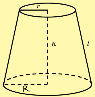 Nếu Hình nón cụt bán kính đáy lớn R, bán kính đáy nhỏ r, chiều cao h và đường sinh l thì: