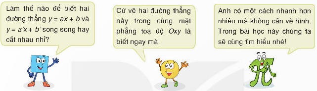 Hai đường thẳng y = ax + b (a ≠ 0) và y = a'x + b' (a' ≠ 0) cắt nhau khi a ≠ a' và ngược lại.